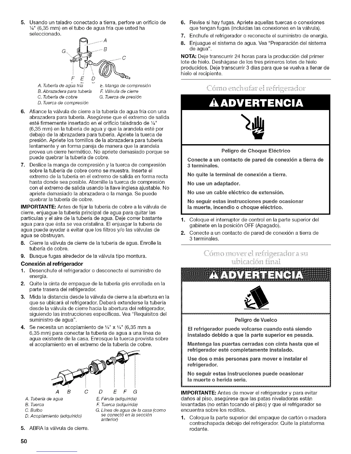 (6,35 mm) en la tuberia de agua y que la arandela este per