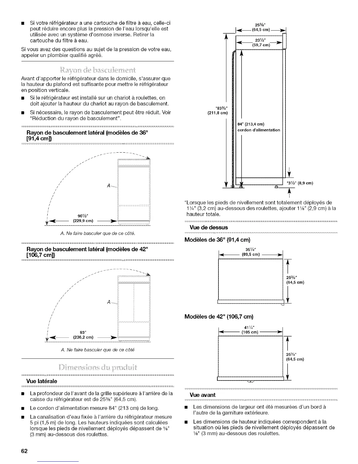Rayon de basculement lateral (modUles de 36"