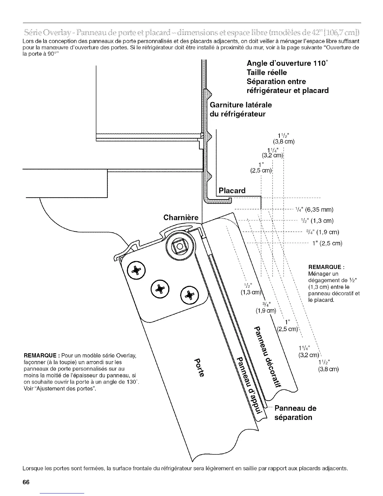 Lorsque les portes sont fermees, la surface frontale du r6frigerateur sera 16g6rement en saillie par rapport aux placards adjacents.
