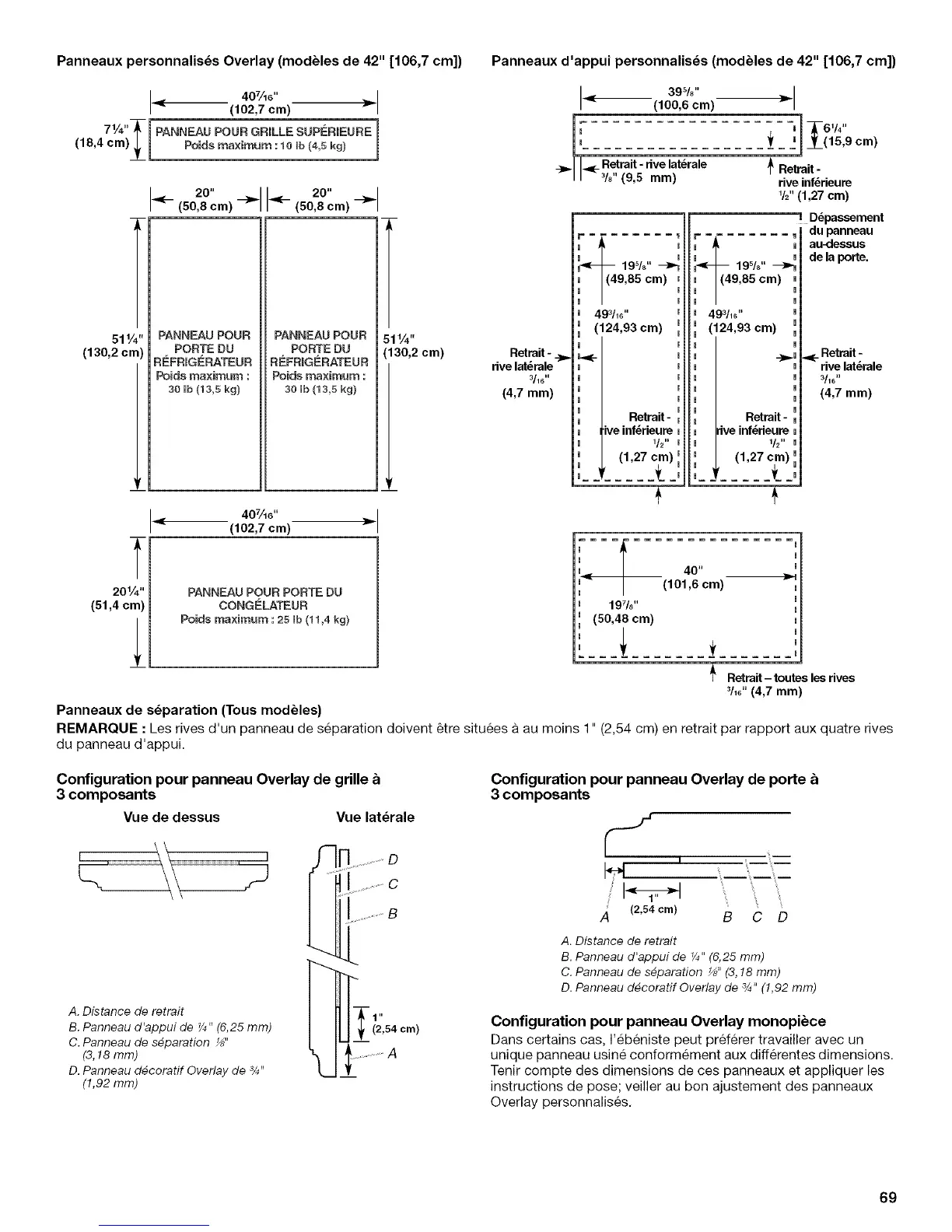 Panneaux personnalis_s Overlay (modbles de 42" [106,7 cm]) Panneaux d'appui personnalis_s (modbles de 42" [106,7 cm])