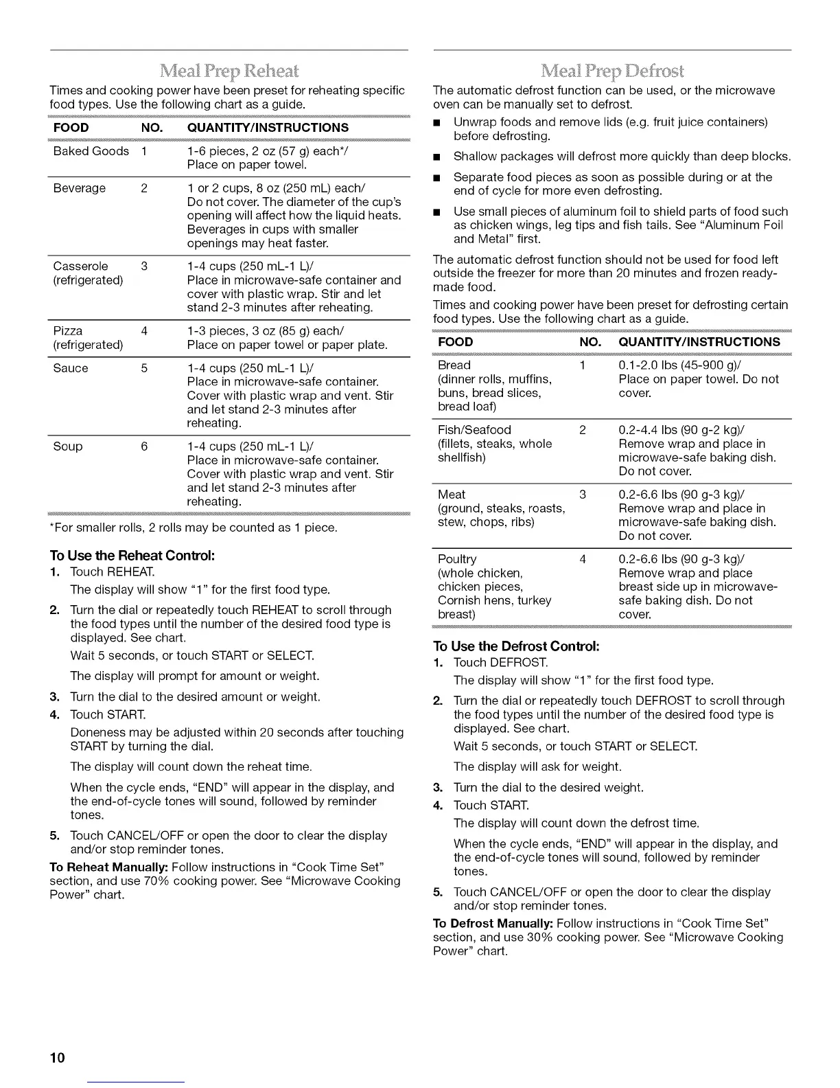 To Defrost Manually: Follow instructions in "Cook Time Set"