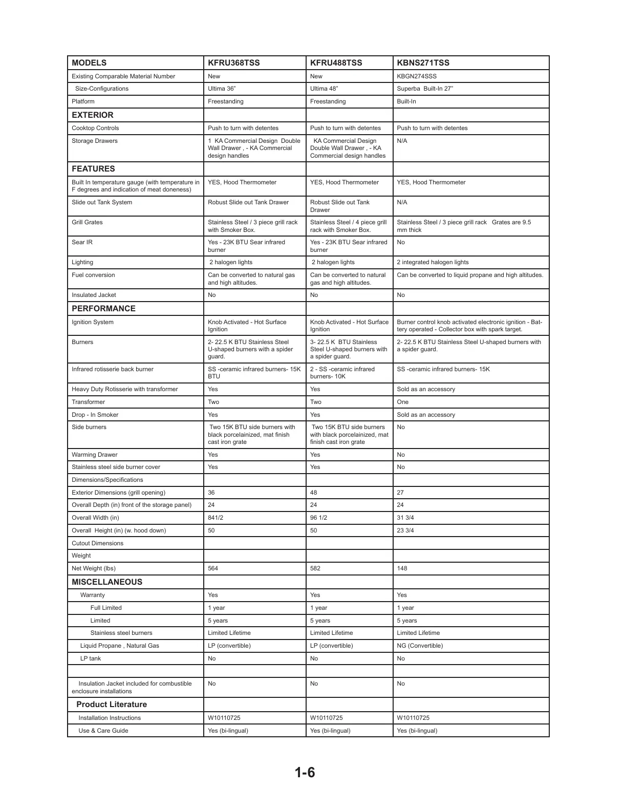 Size-Congurations Ultima 36” Ultima 48” Superba Built-In 27”