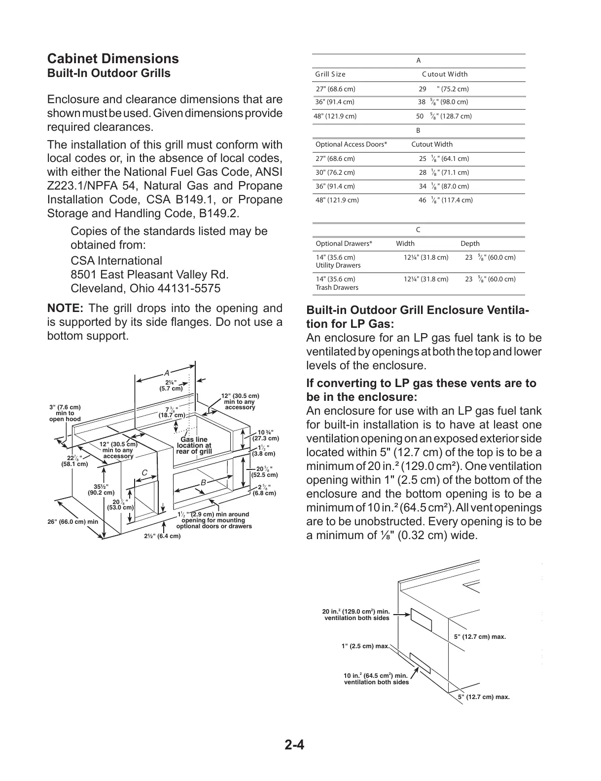 Installation Code, CSA B149.1, or Propane