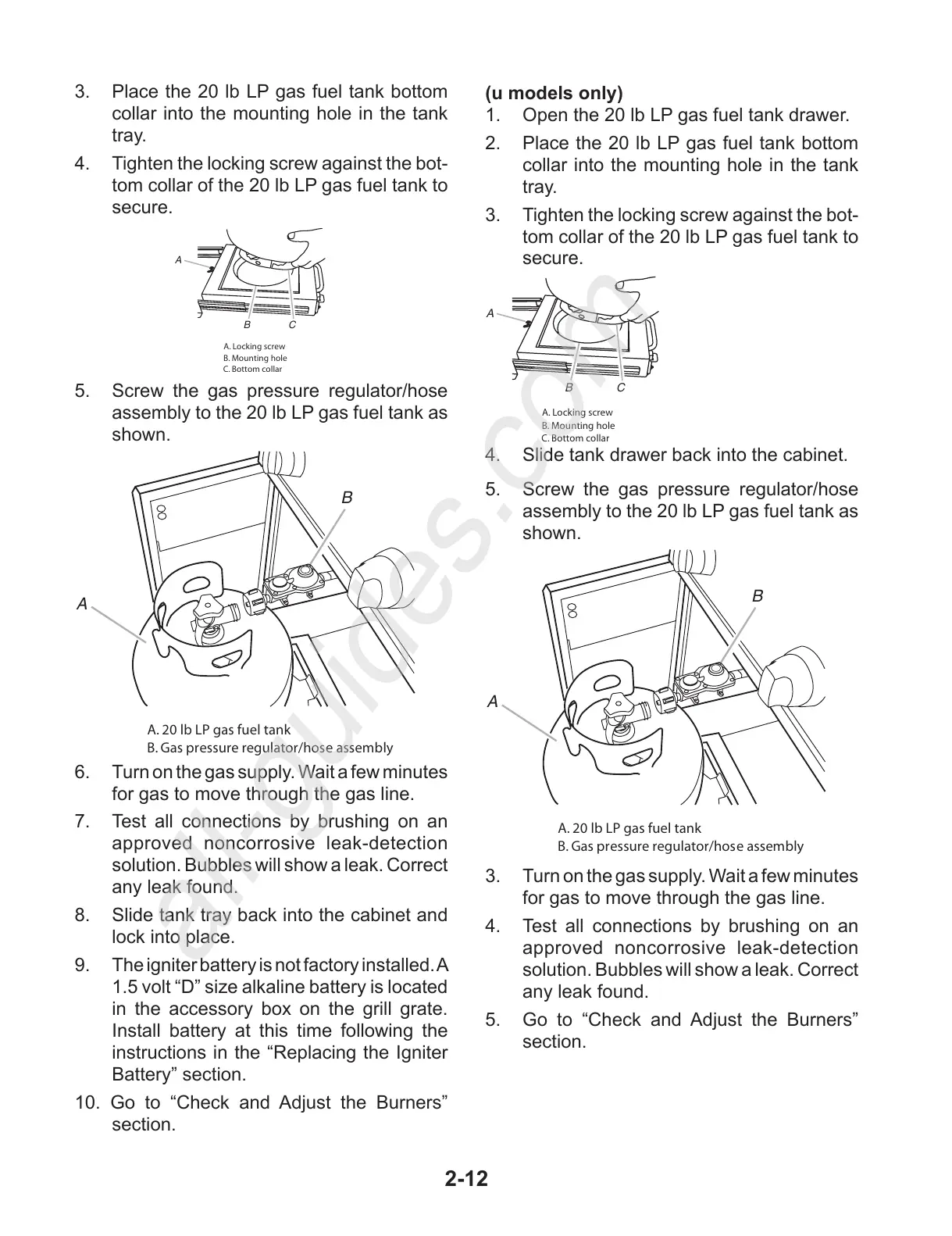 2. Place the 20 lb LP gas fuel tank bottom