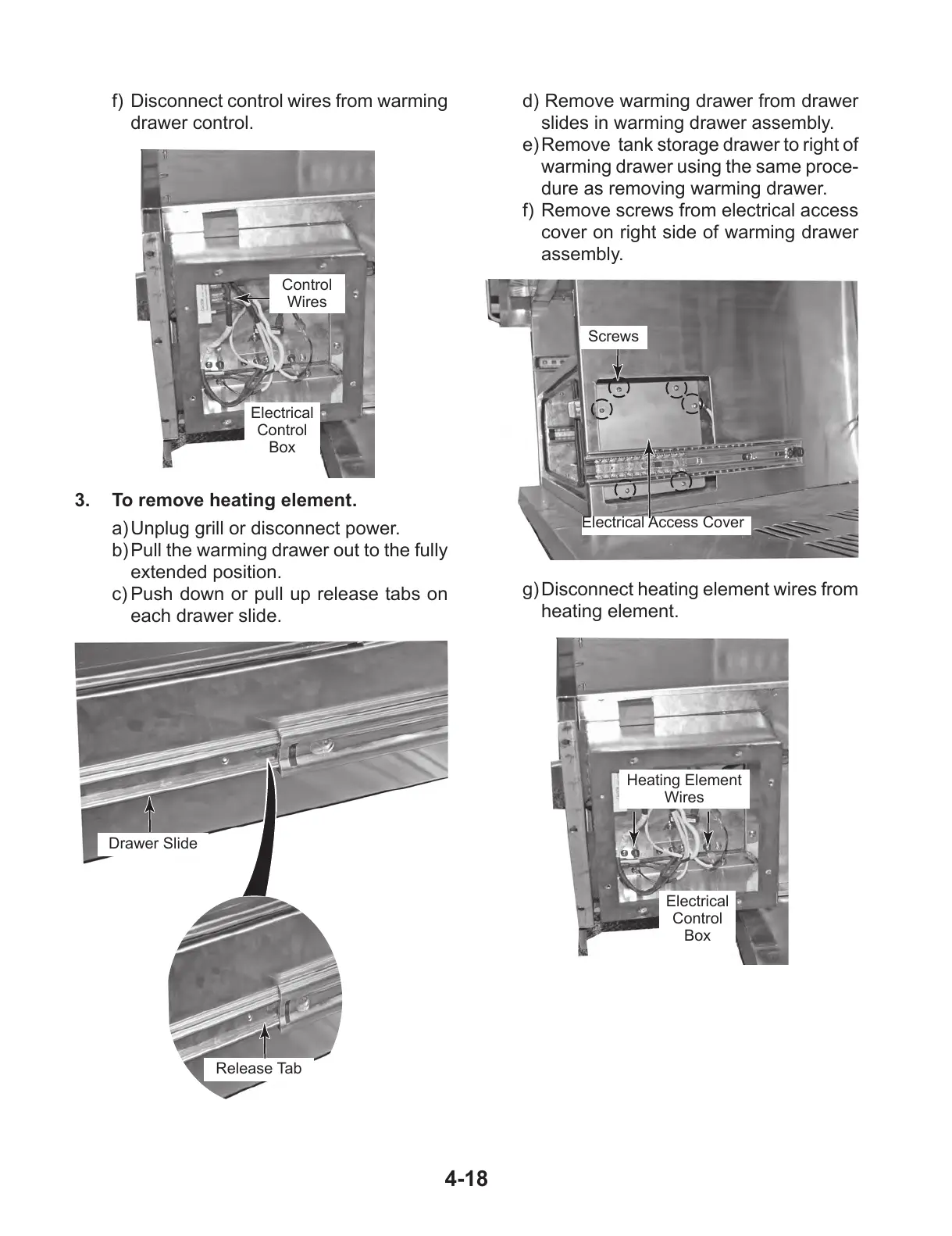 d) Remove warming drawer from drawer
