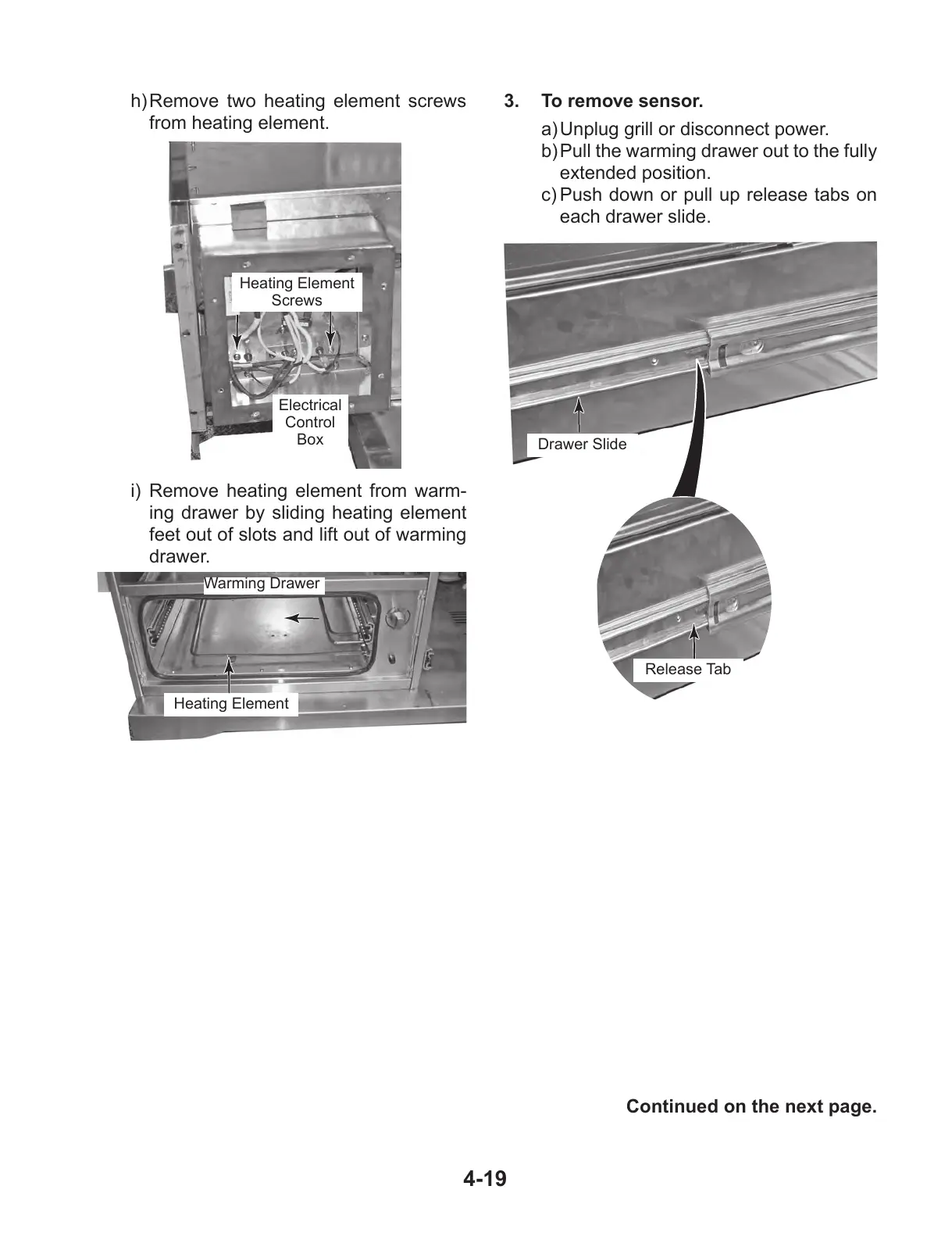 i) Remove heating element from warm-