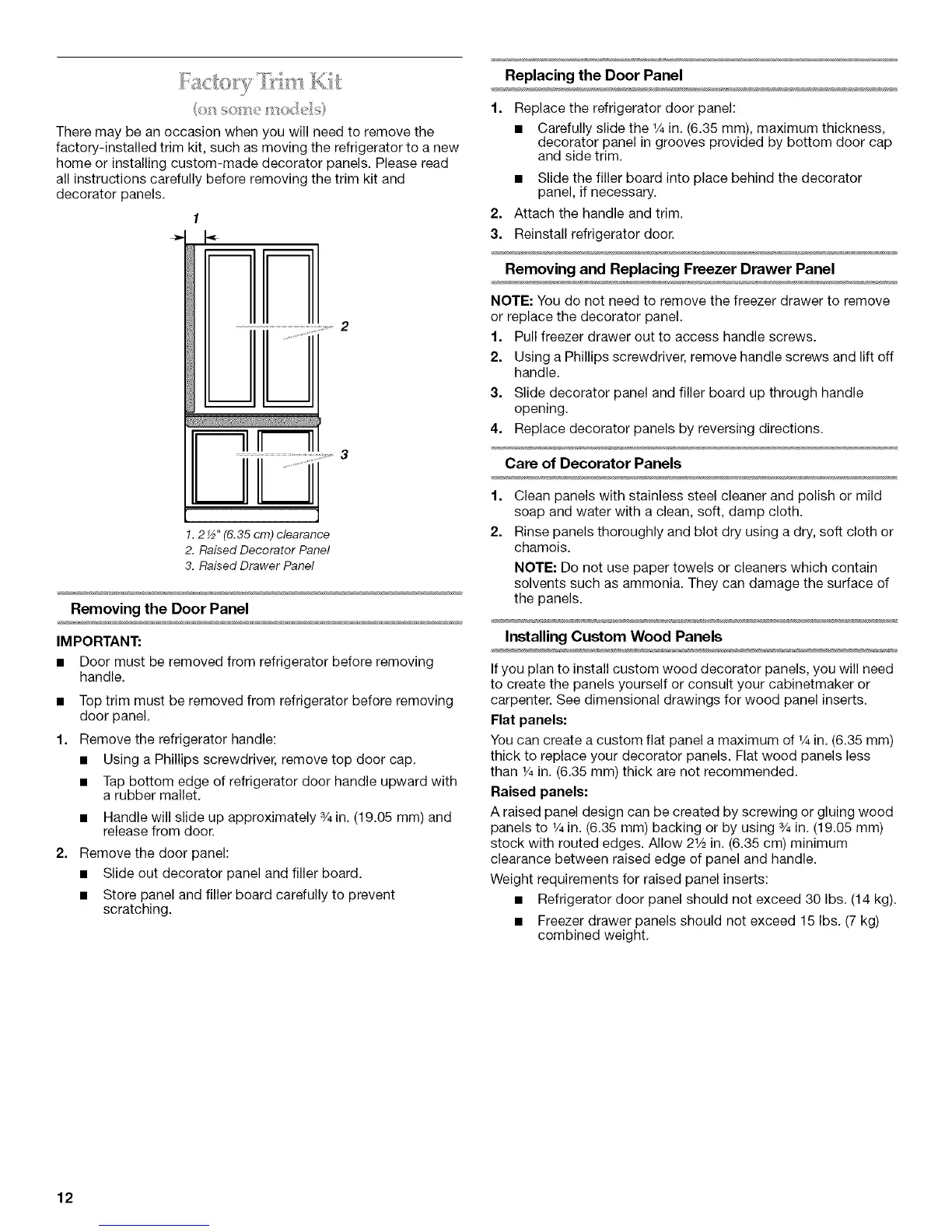 • Refrigerator door panel should not exceed 30 Ibs. (14 kg).