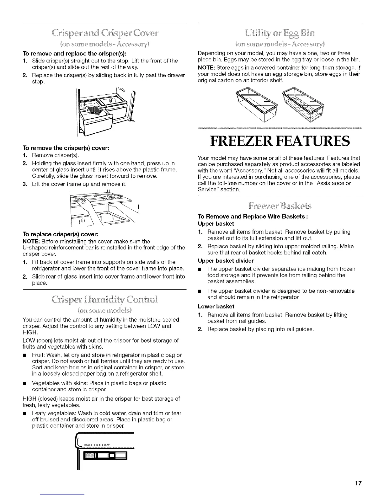 piece bin. Eggs may be stored in the egg tray or loose in the bin.