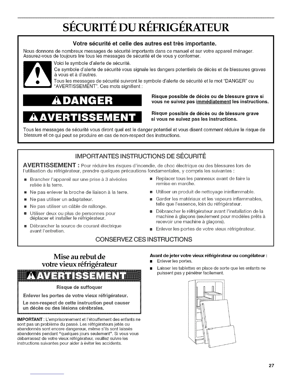 Nous donnons de nombreux messages de securit6 importants dans ce manuel et sur votre appareil menager.