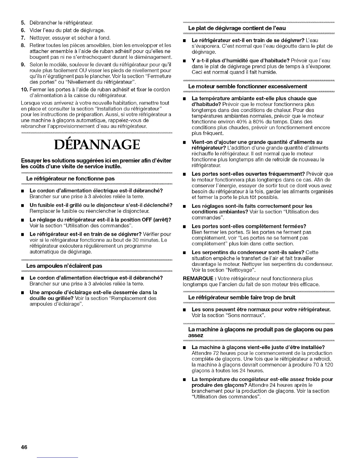 REMARQUE :Votre refrigerateur neuf fonctionnera plus