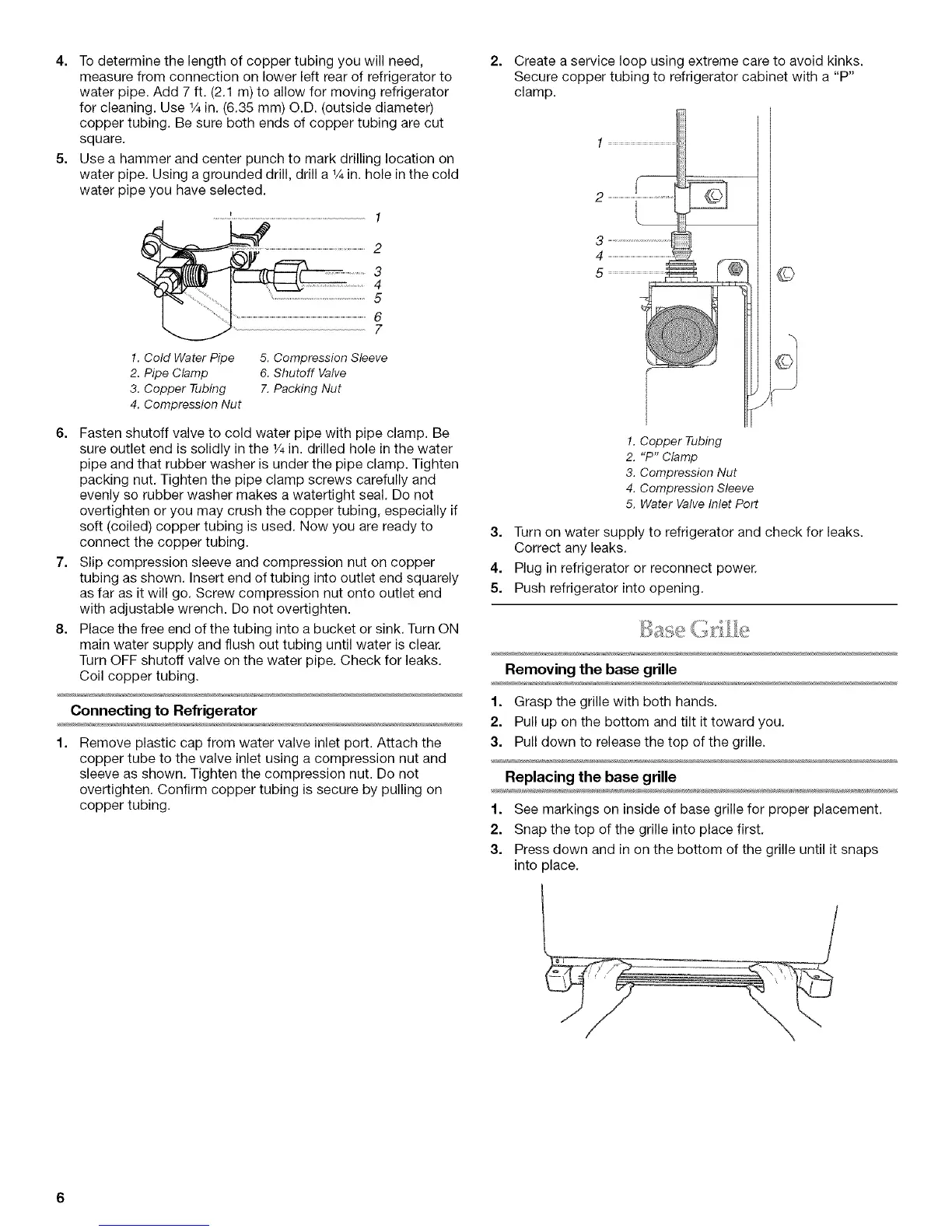 overtighten. Confirm copper tubing is secure by pulling on