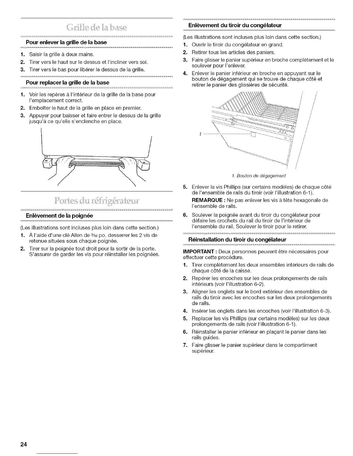 6. Soulever la poign_e avant du tiroir du congelateur pour