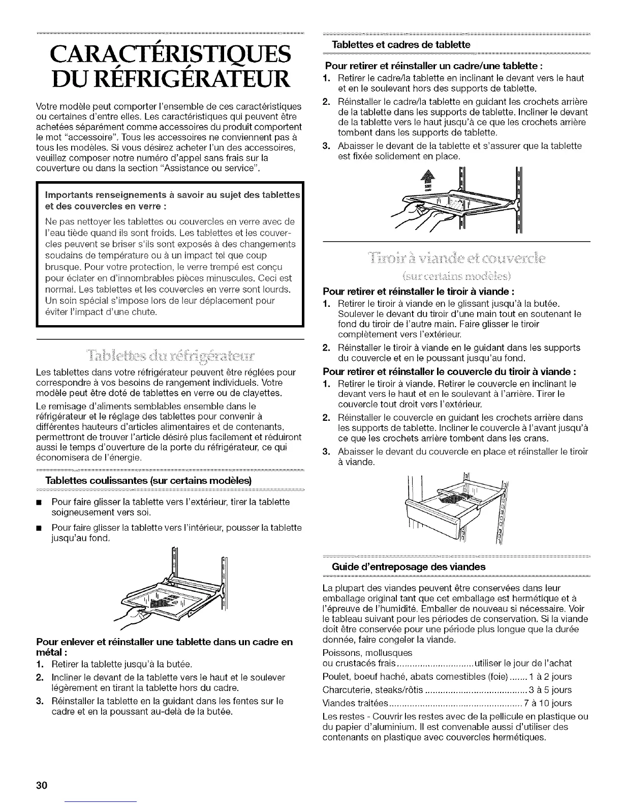 Pour retirer et r6installer le couvercle du tiroir _ viande :