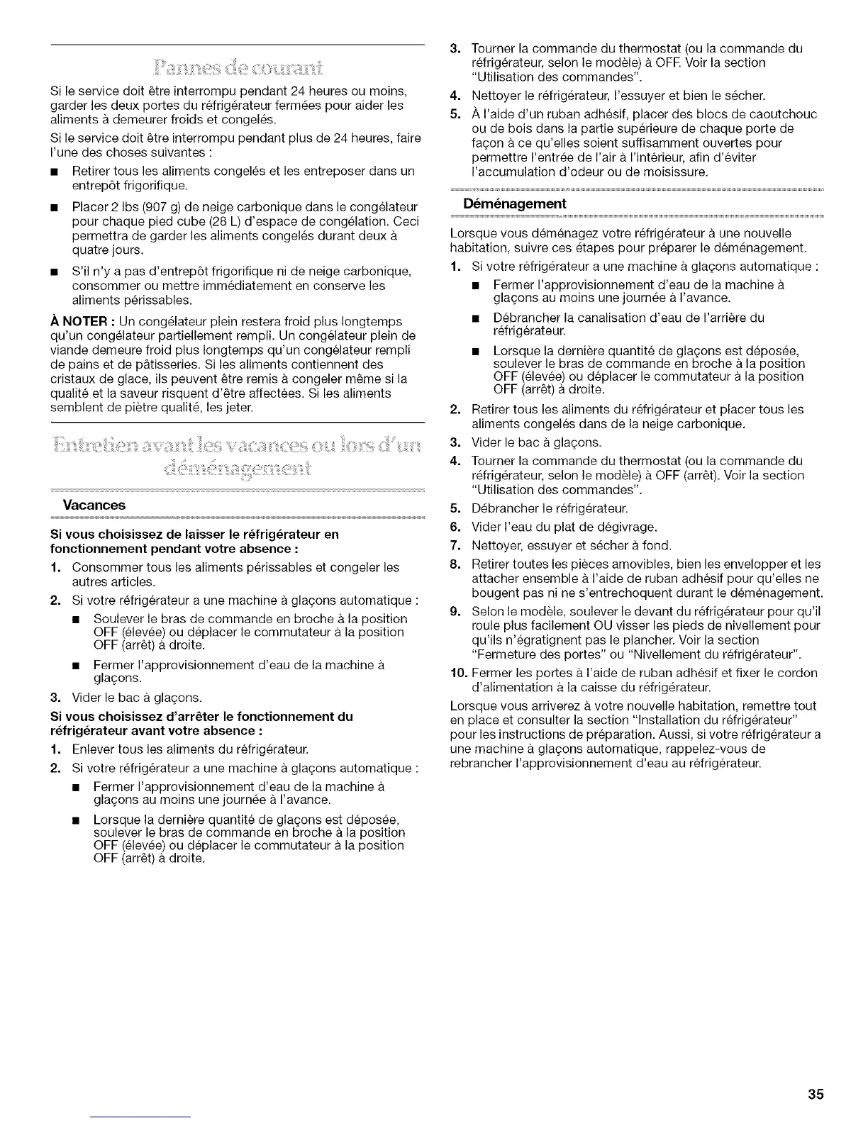 • Retirer tous les aliments congeles et les entreposer dans un