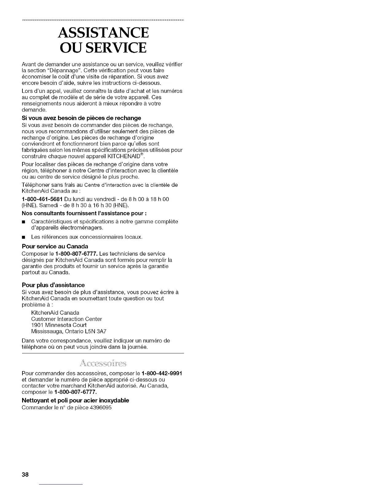 contacter votre marchand KitchenAid autorise. Au Canada,