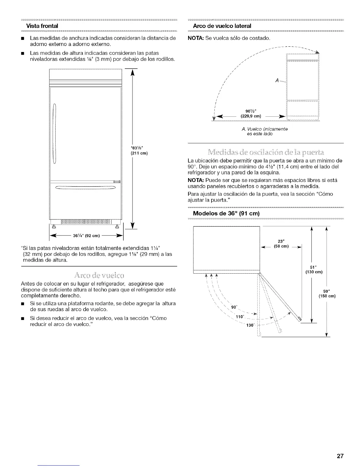 Para ajustar la oscilacidn de la puerta, vea la secci6n "Cdmo