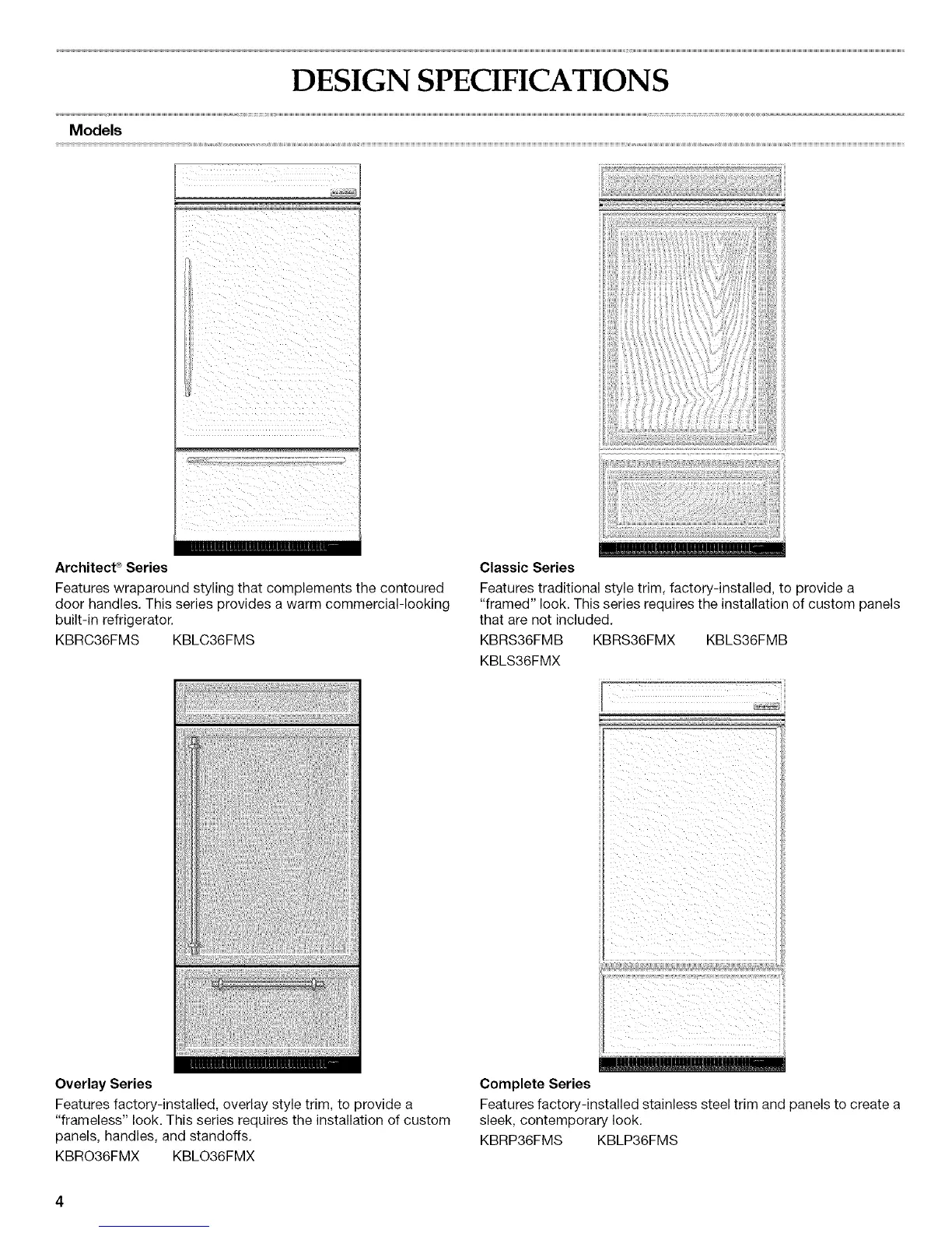 KitchenAid KBRC36FMS00 - Product Design and Specifications; Refrigerator Series Models