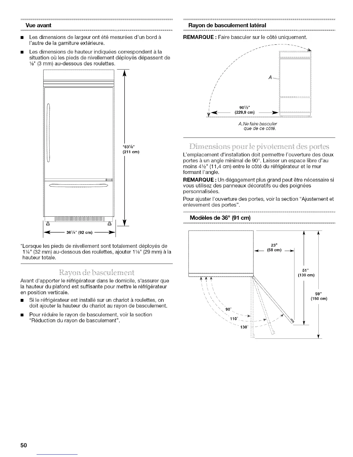 REMARQUE : Un degagement plus grand peut _tre necessaire si