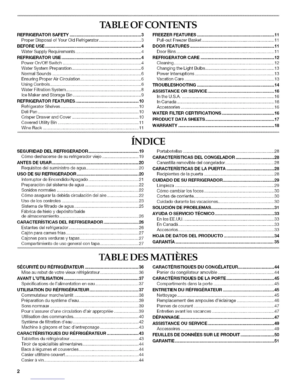 FREEZER FEATURES .................................................................. 11