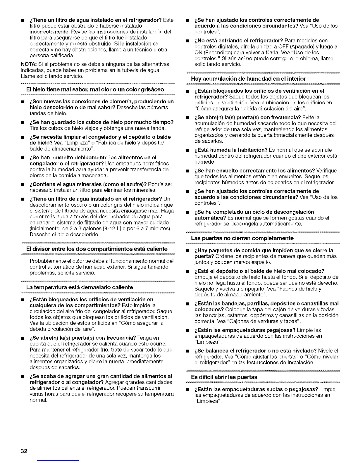 de hielo? Vea "Limpieza" o "Fabrica de hielo y dep6sito/