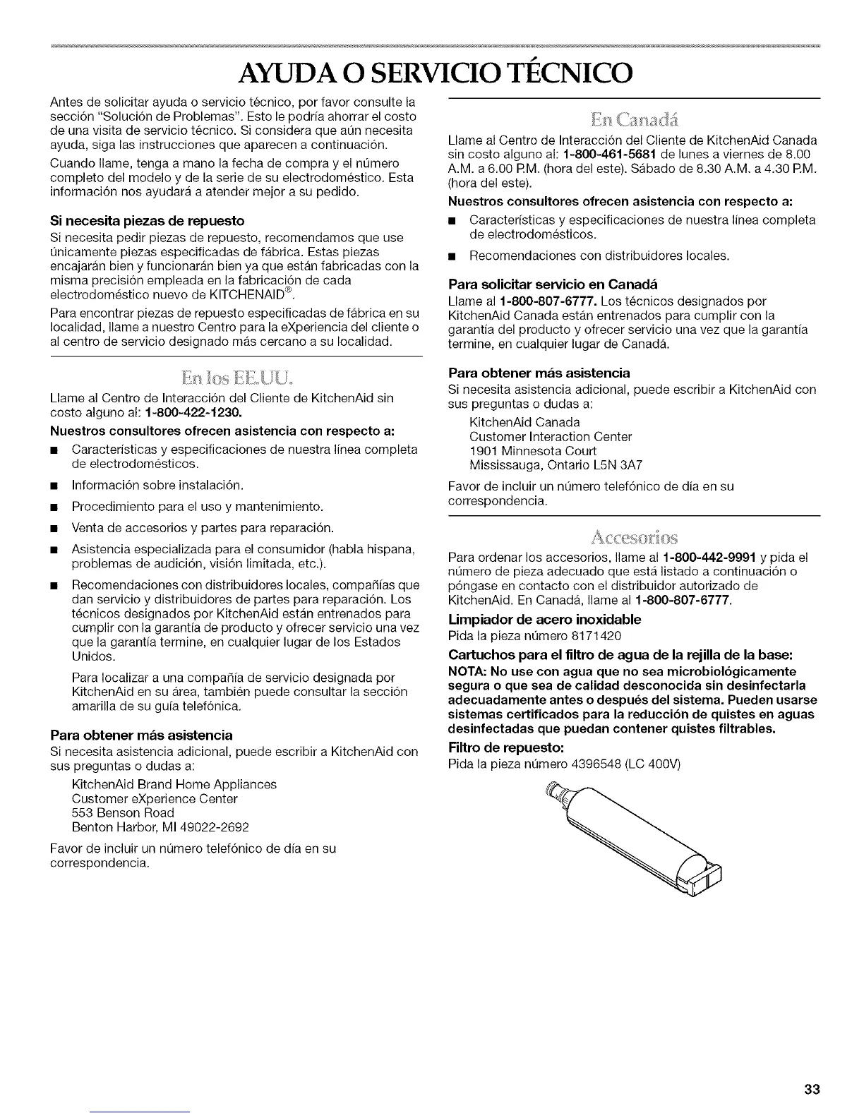 KitchenAid. En CanadA, Ilame al 1-800-807-6777.
