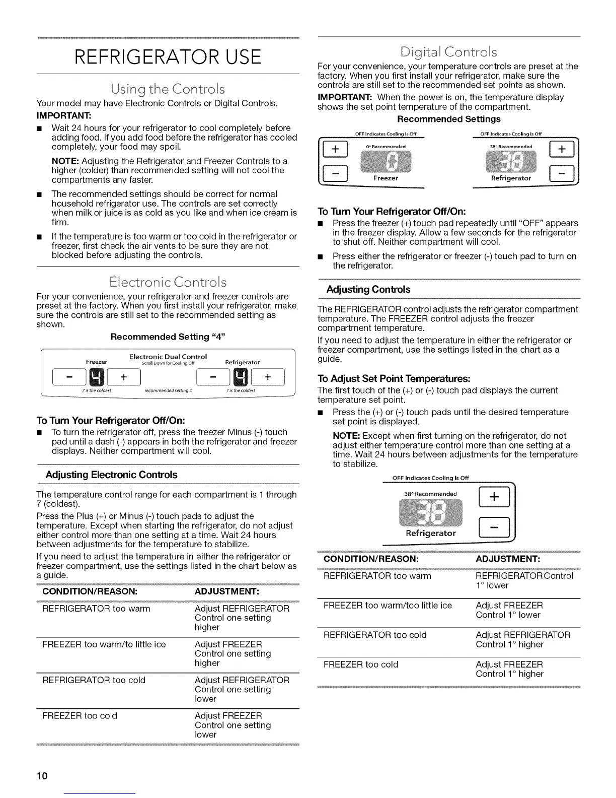 NOTE: Adjusting the Refrigerator and Freezer Controls to a