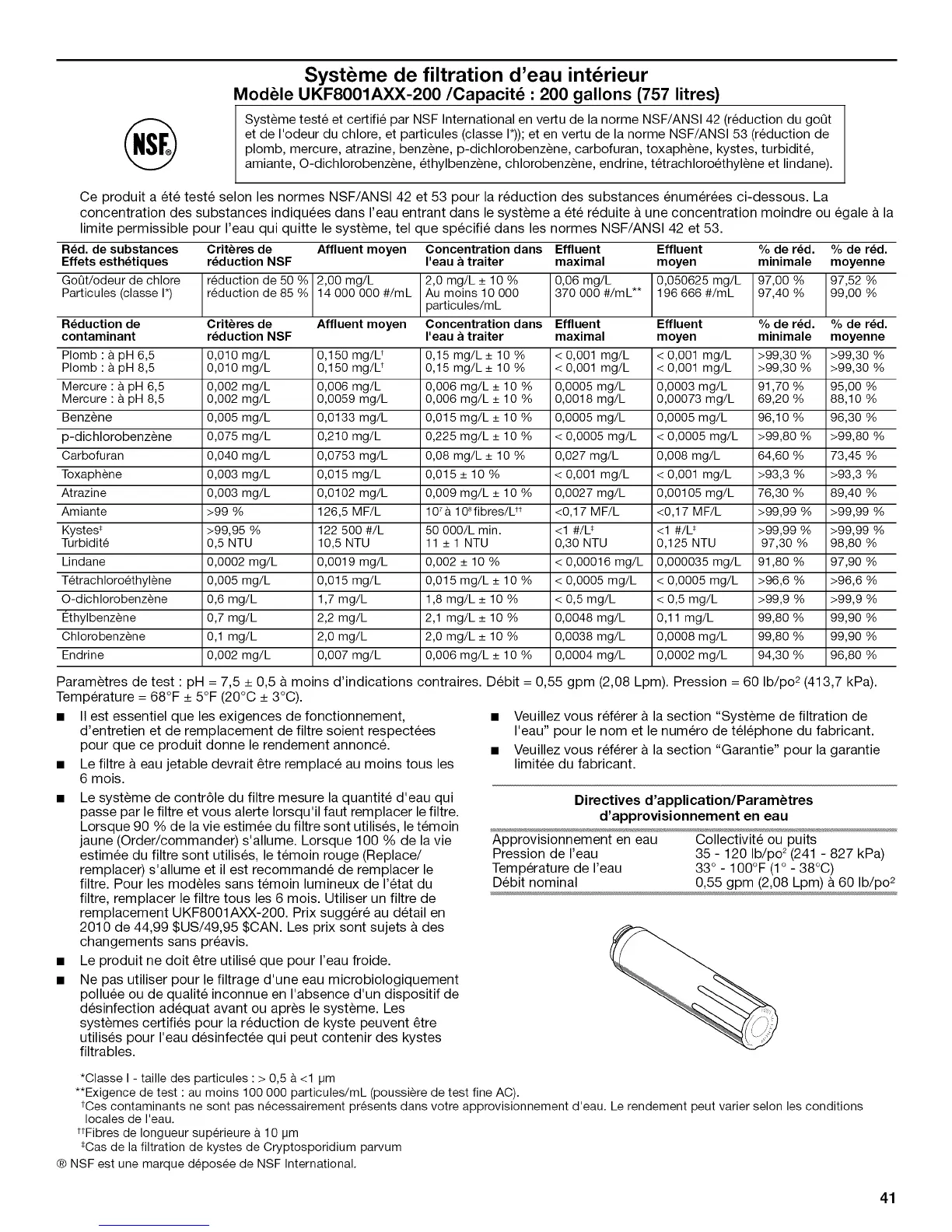 tCes contaminants ne sont pas necessairement presents dans votre approvisionnement d'eau. Le rendement pout varier solon los conditions