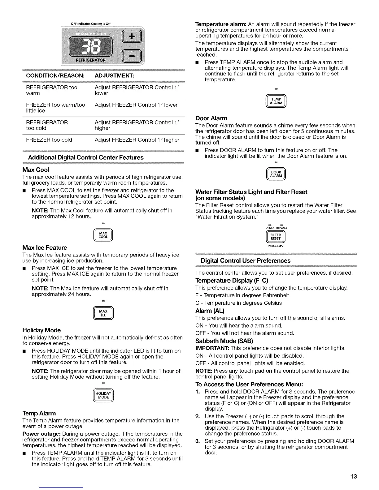 REFRIGERATOR Adjust REFRIGERATOR Control 1°