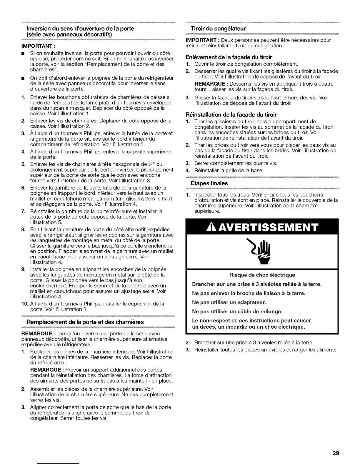 tours. Laisser les vis sur la fa£;ade du tiroir.