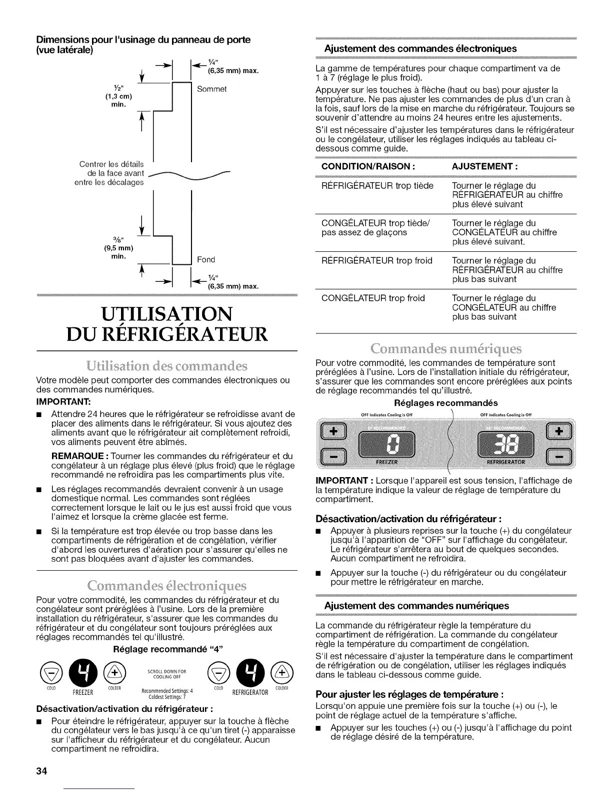REMARQUE :Tourner les commandes du refrigerateur et du