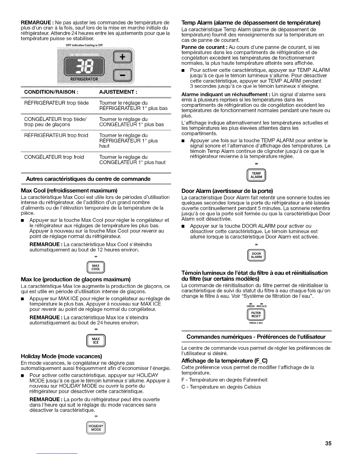 refrig6rateur. Attendre 24 heures entre les ajustements pour que la