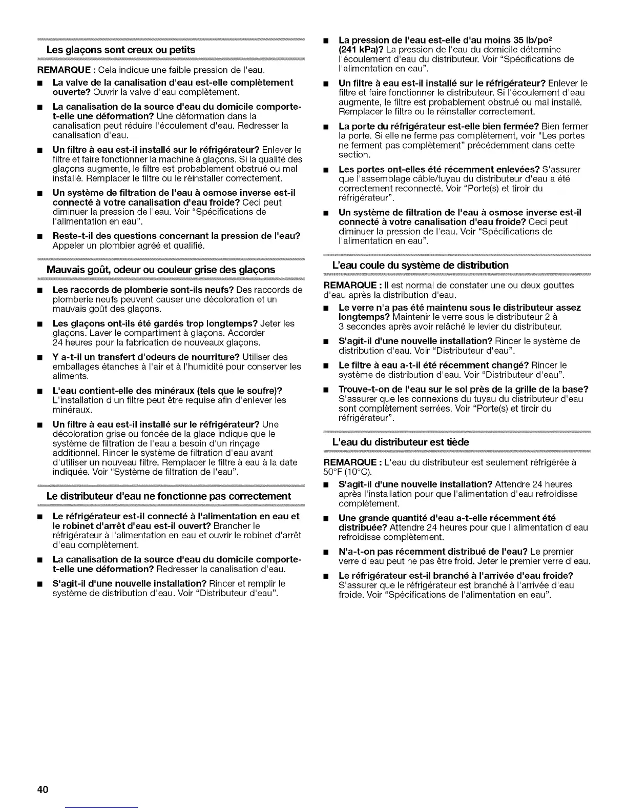 filtre et faire fonctionner la machine & gla£;ons. Si la qualite des