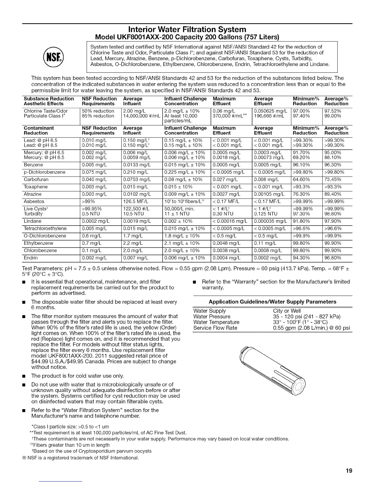 Chlorine Taste and Odor, Particulate Class I*; and against NSF/ANSl Standard 53 for the reduction of