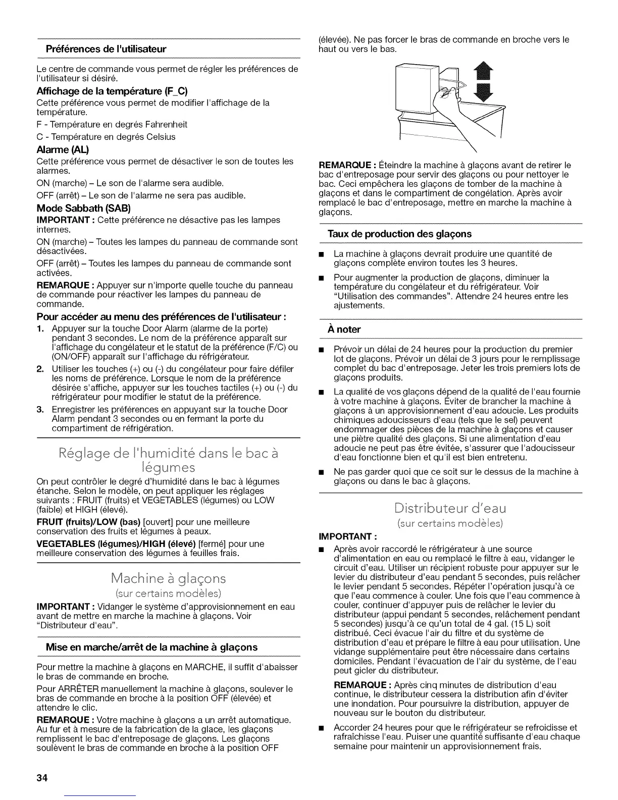 KitchenAid KBRS22KCMS00 - Reglage de Ihumidite Dans Le Bac & Legumes; Machine a Glagons; Distributeur Deau