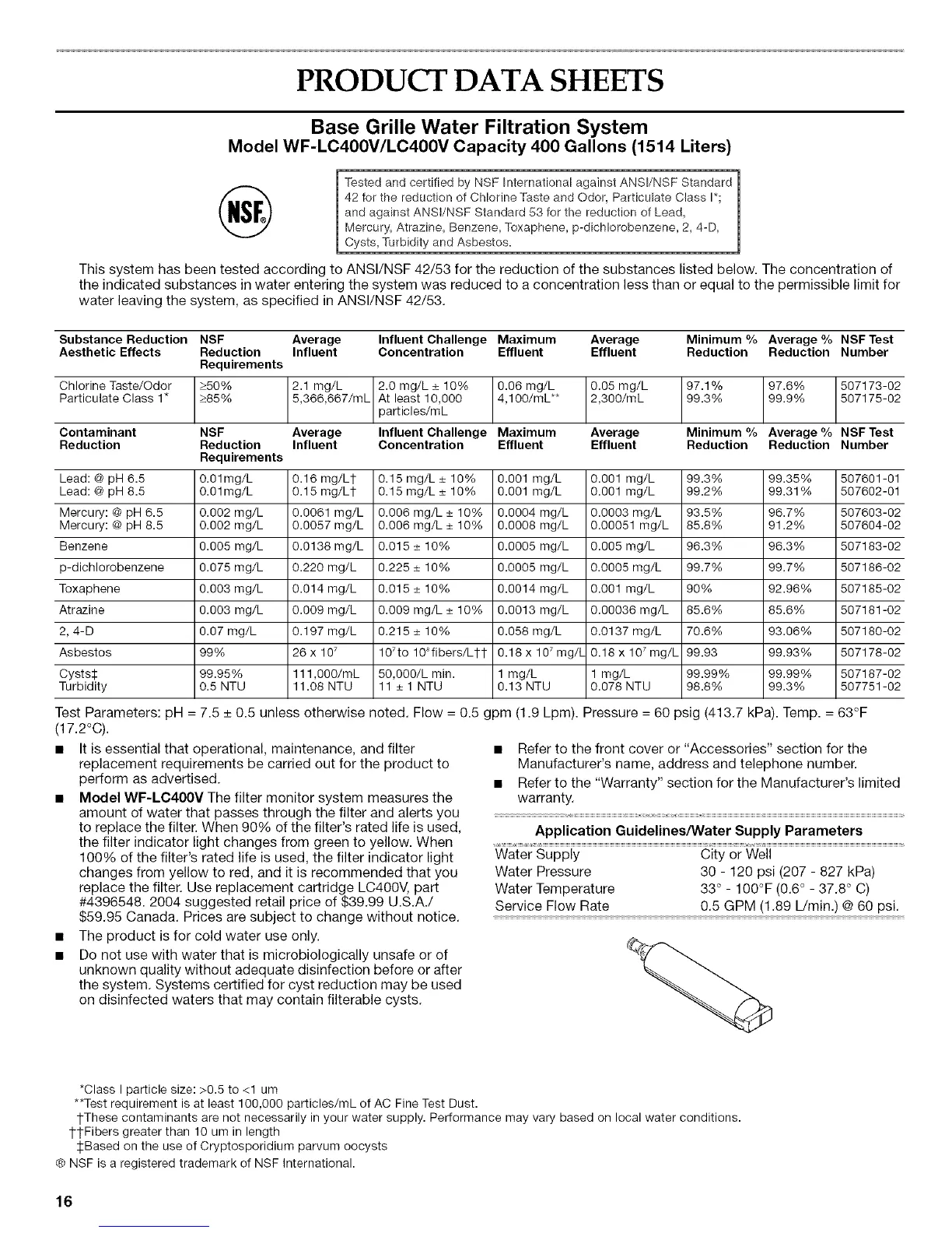 Cysts:[: 99.95% 111,000/mL 50,000/L min. 1 mg/L 1 mg/L 99.99% 99.99% 507187-02