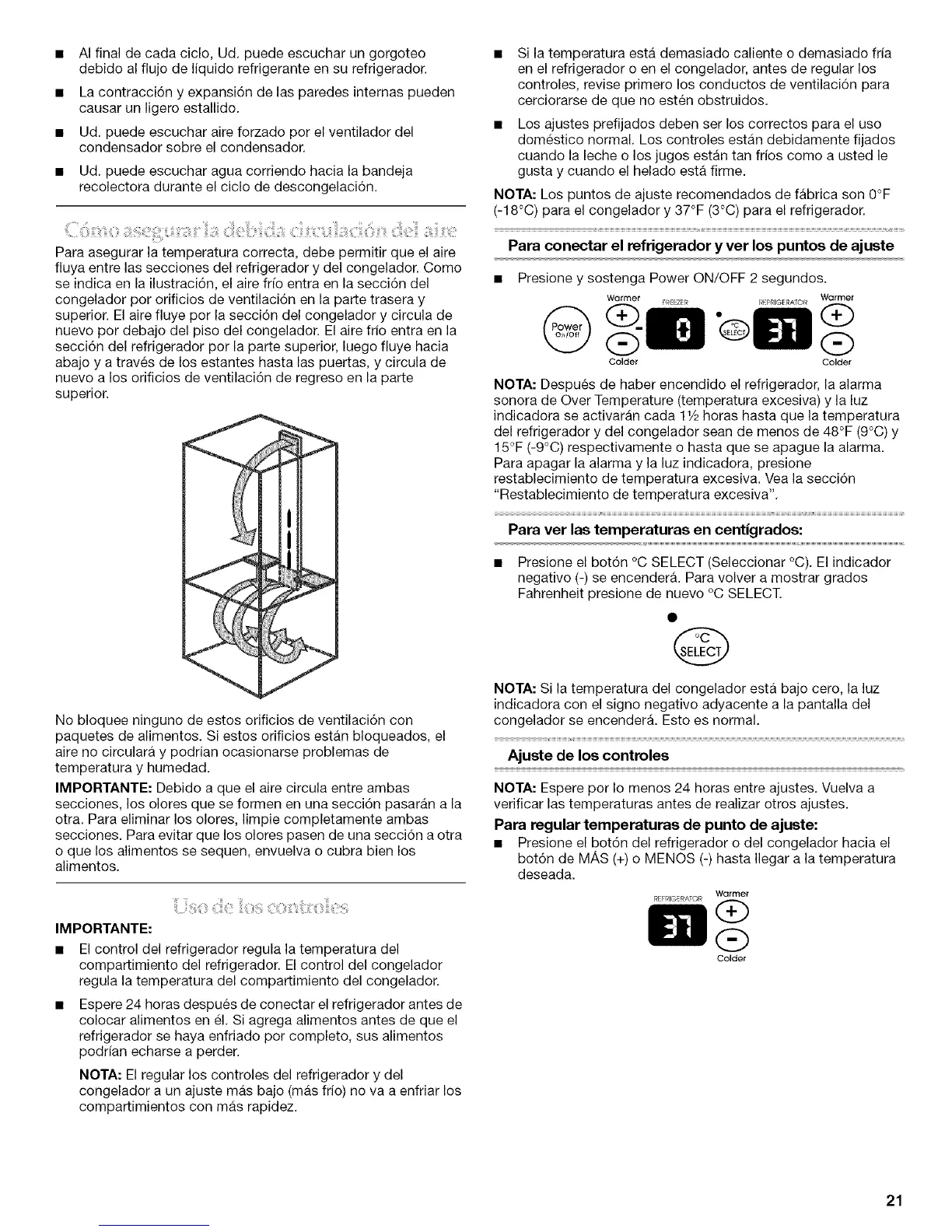 fluya entre las secciones del refrigerador y del congelador. Come