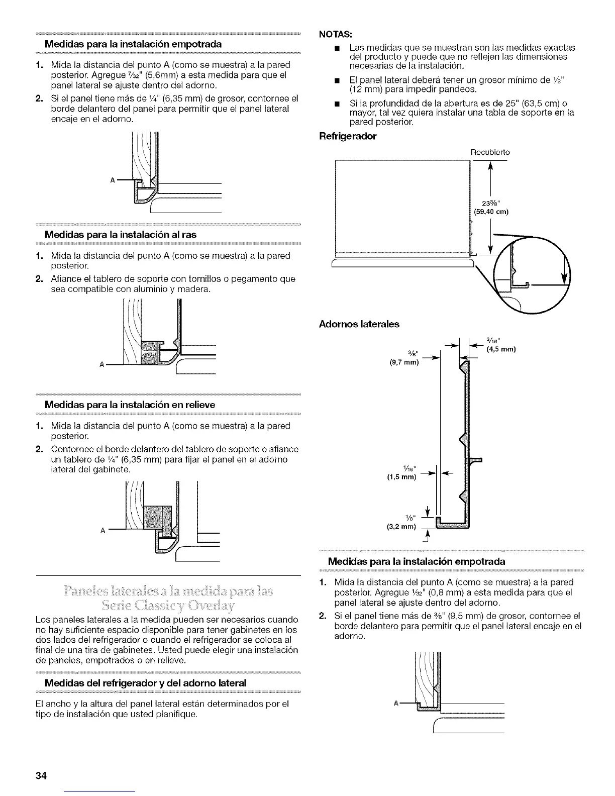 Medidas del refrigerador y del adorno lateral
