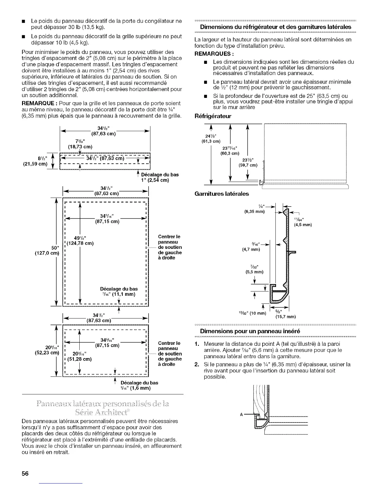 Dimensions du r_frig_rateur et des garnitures lat_rales