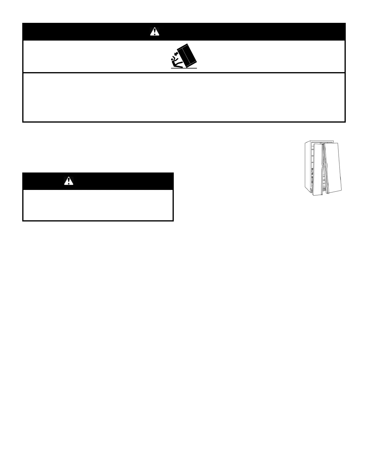 Refrigerator is top heavy and tips easily when not completely installed.