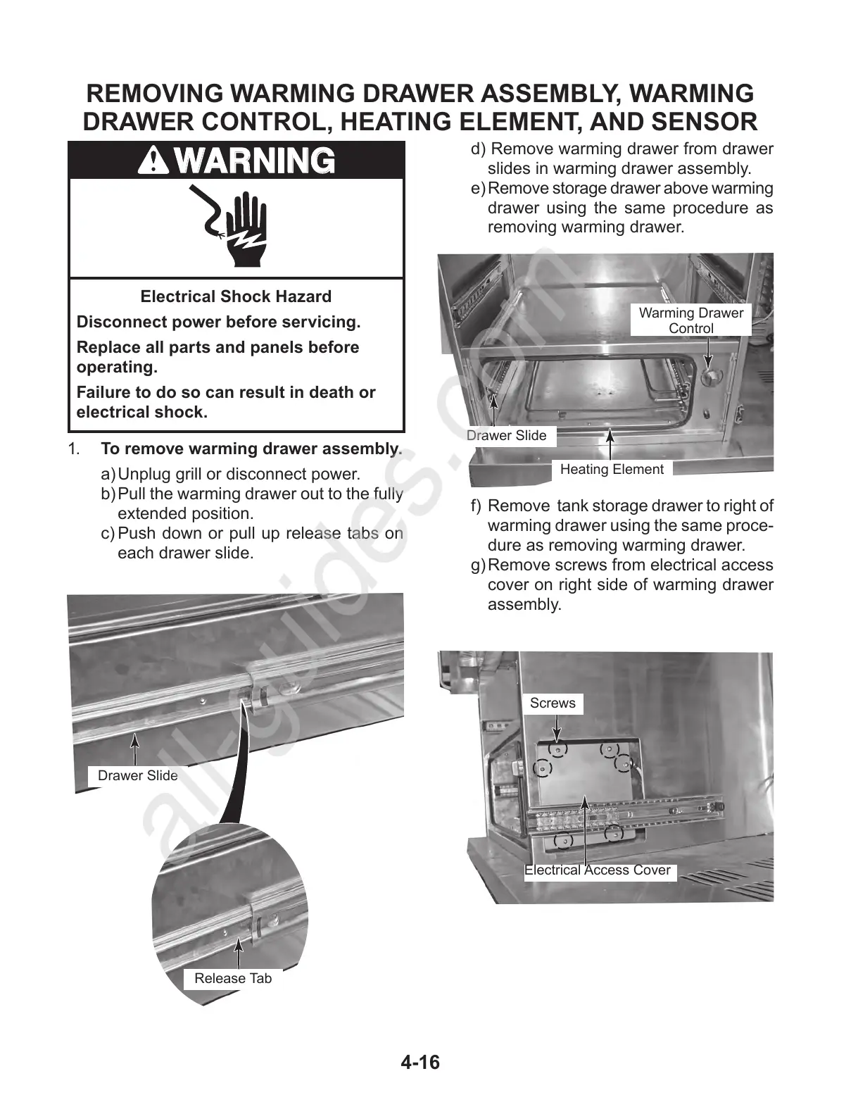 REMOVING WARMING DRAWER ASSEMBLY, WARMING