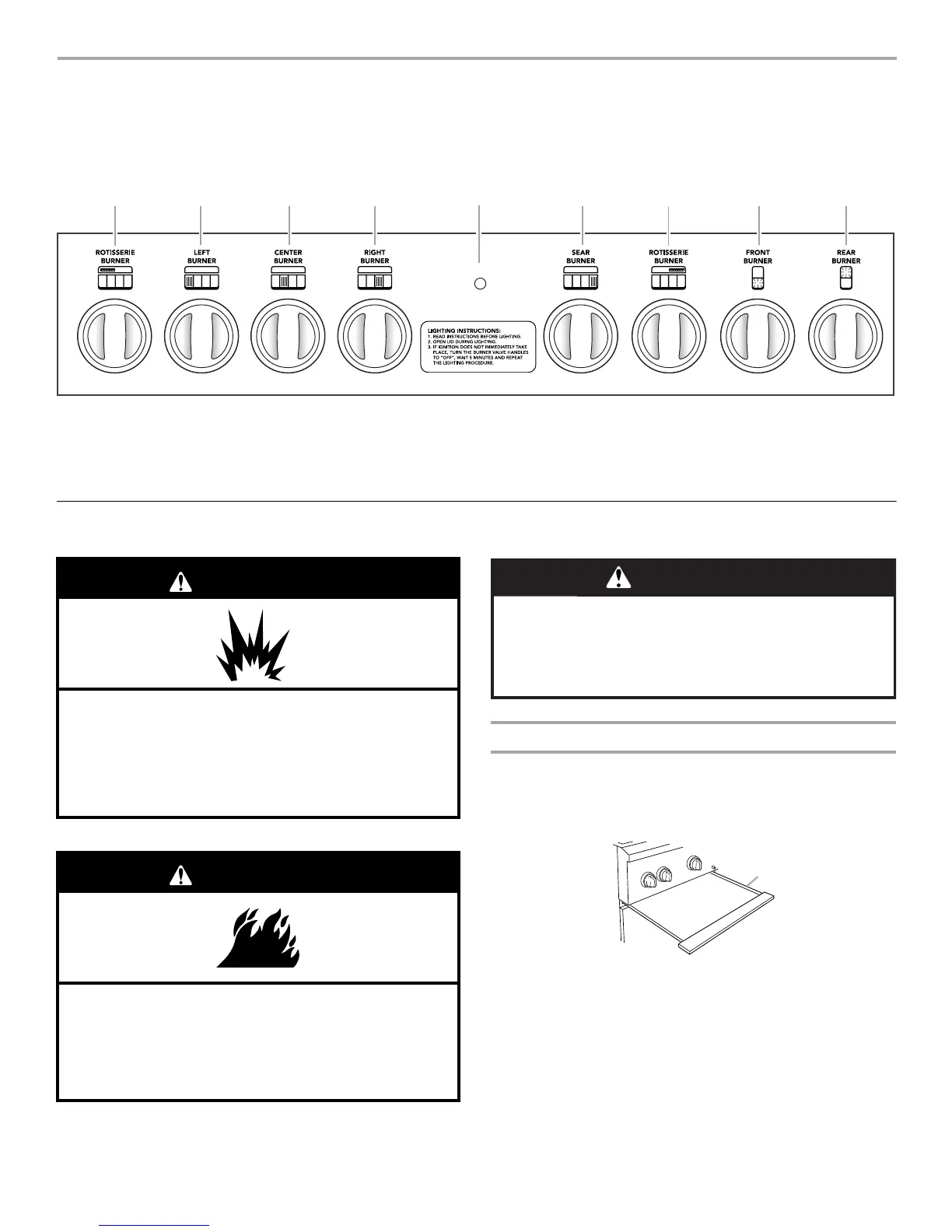 1. Open the hood completely. Do not light burners with the hood