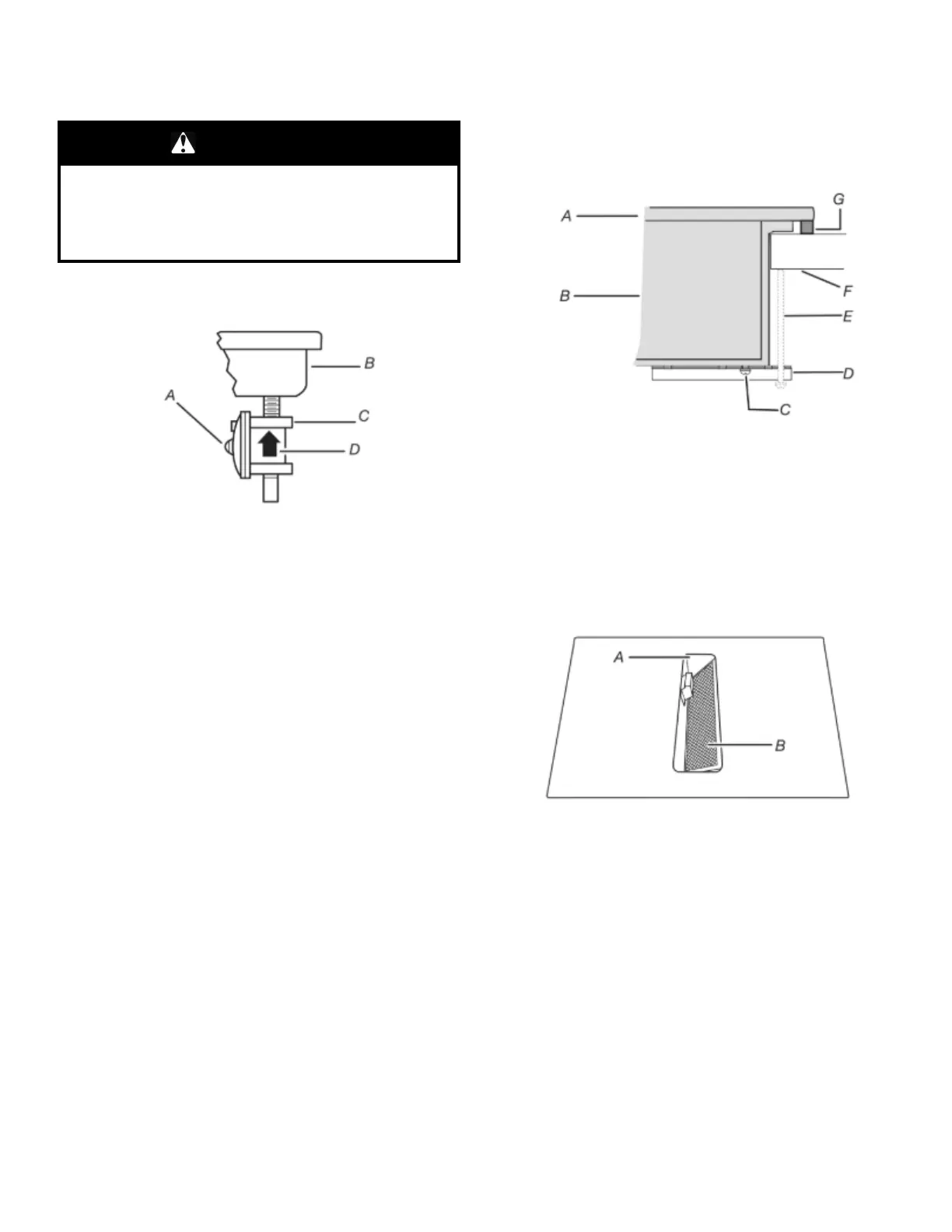 pointing up to cooktop bottom.