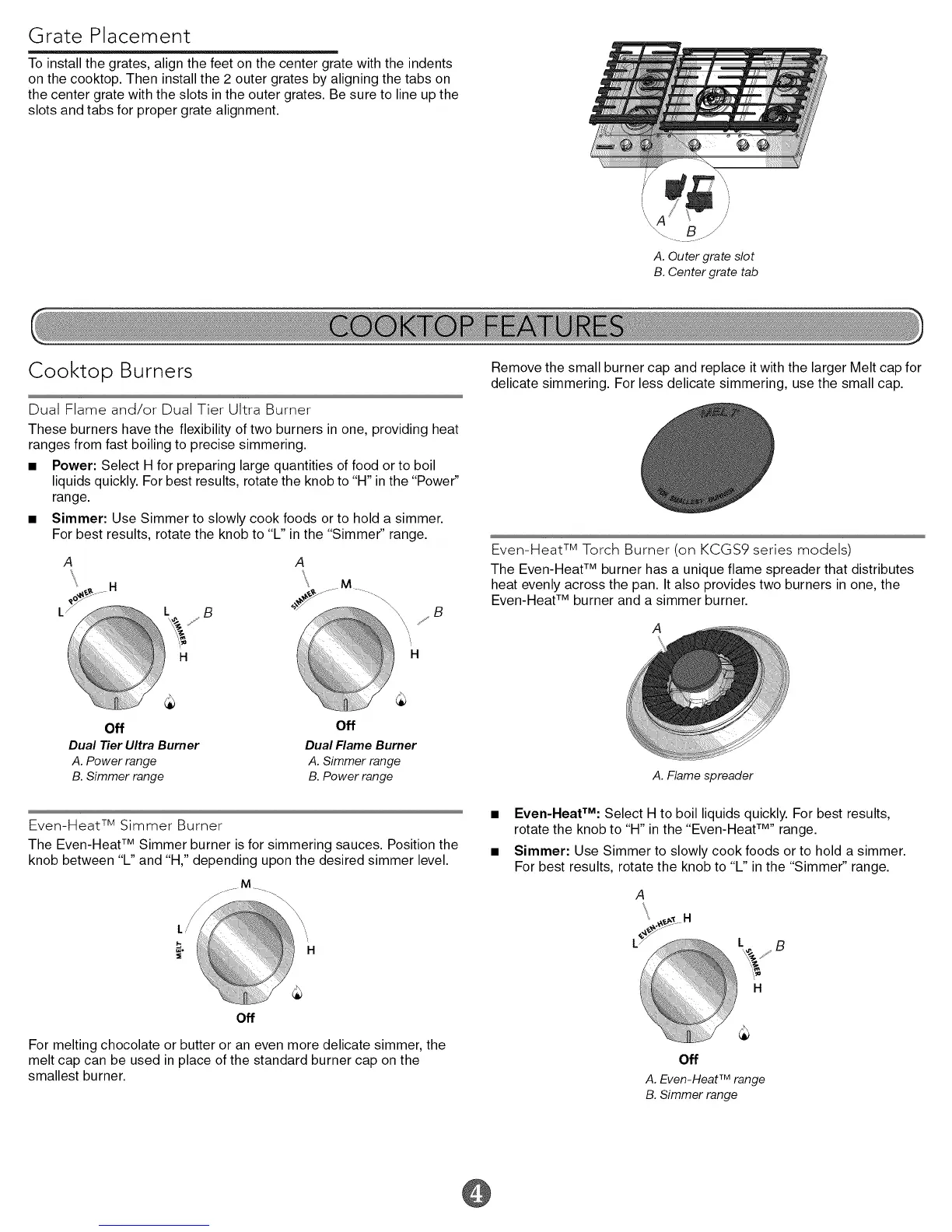 The Even-Heat TM Simmer burner is for simmering sauces. Position the