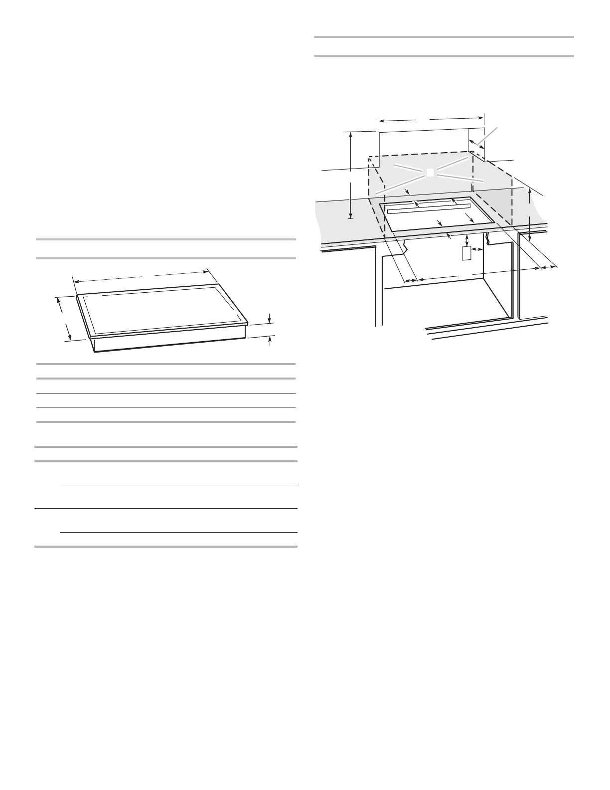 medidas de espacio sobre la supercie de cocción.