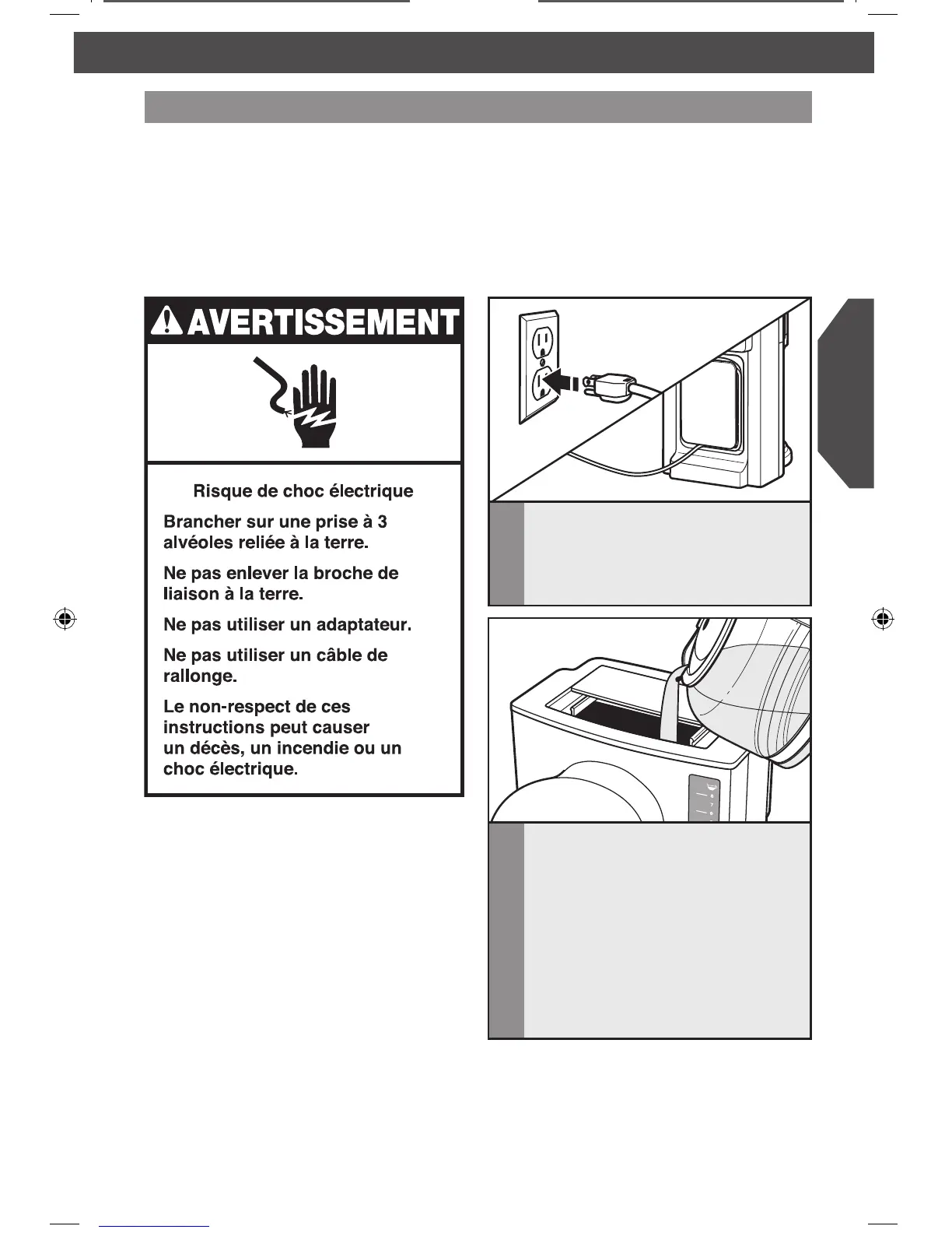 prise à 3 alvéoles reliée à la terre.