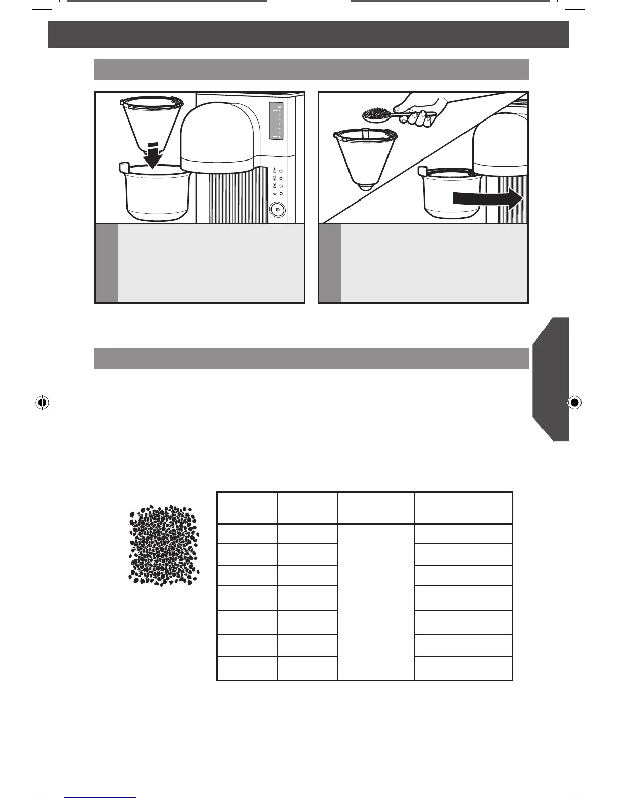 puede consultar la tabla siguiente para decidir la cantidad de café que utilizará para el número