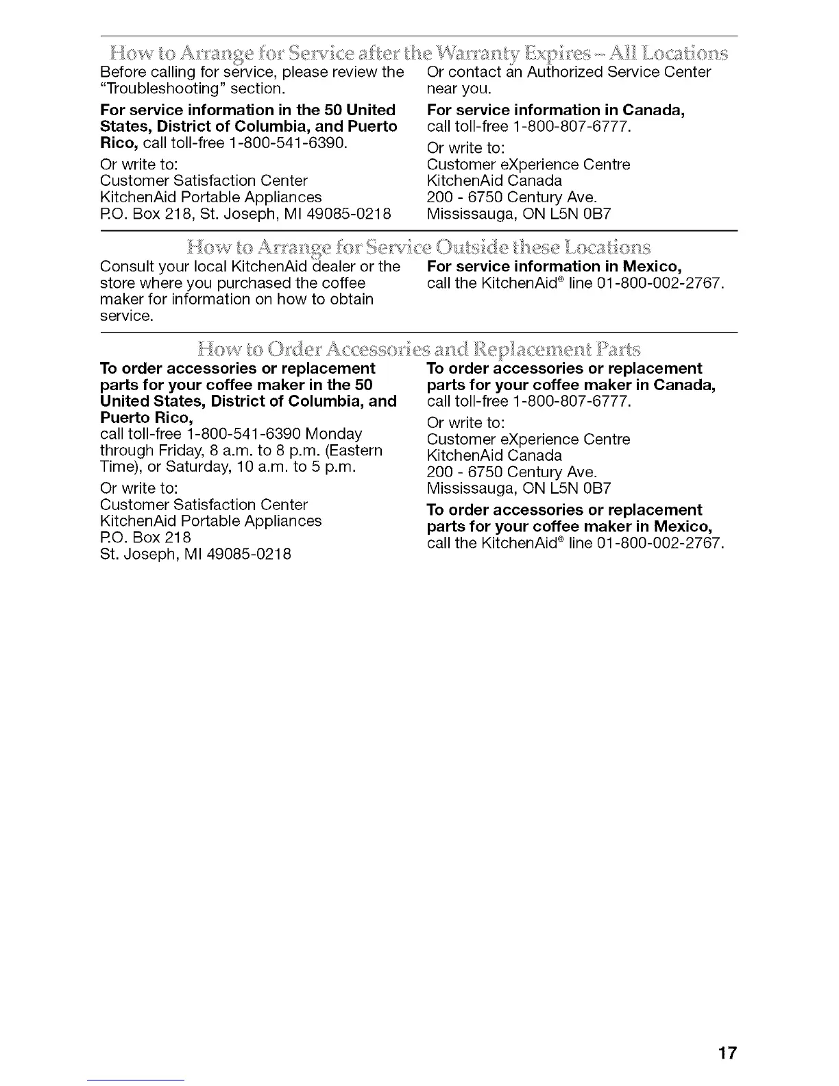Consult your local KitchenAid dealer or the For service information in Mexico,