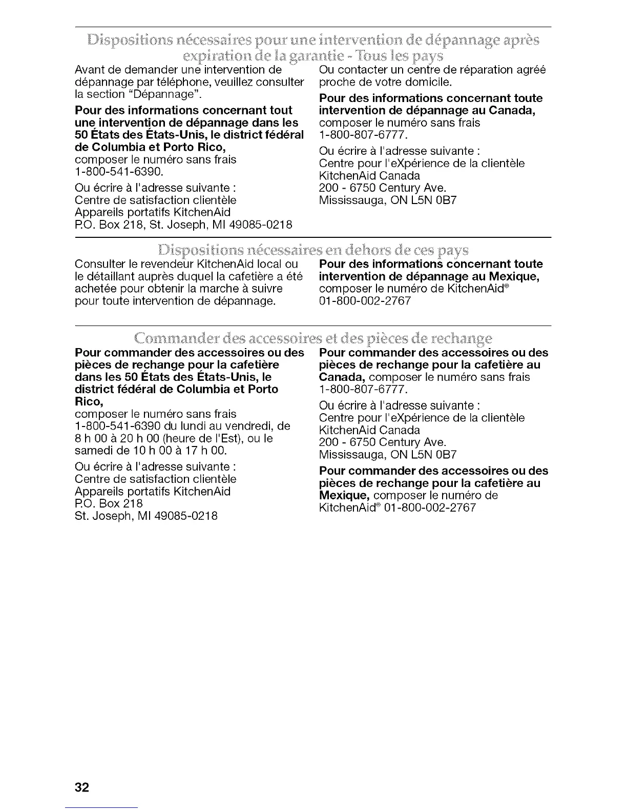 Consulter le revendeur KitchenAid local ou Pour des informations concernant toute