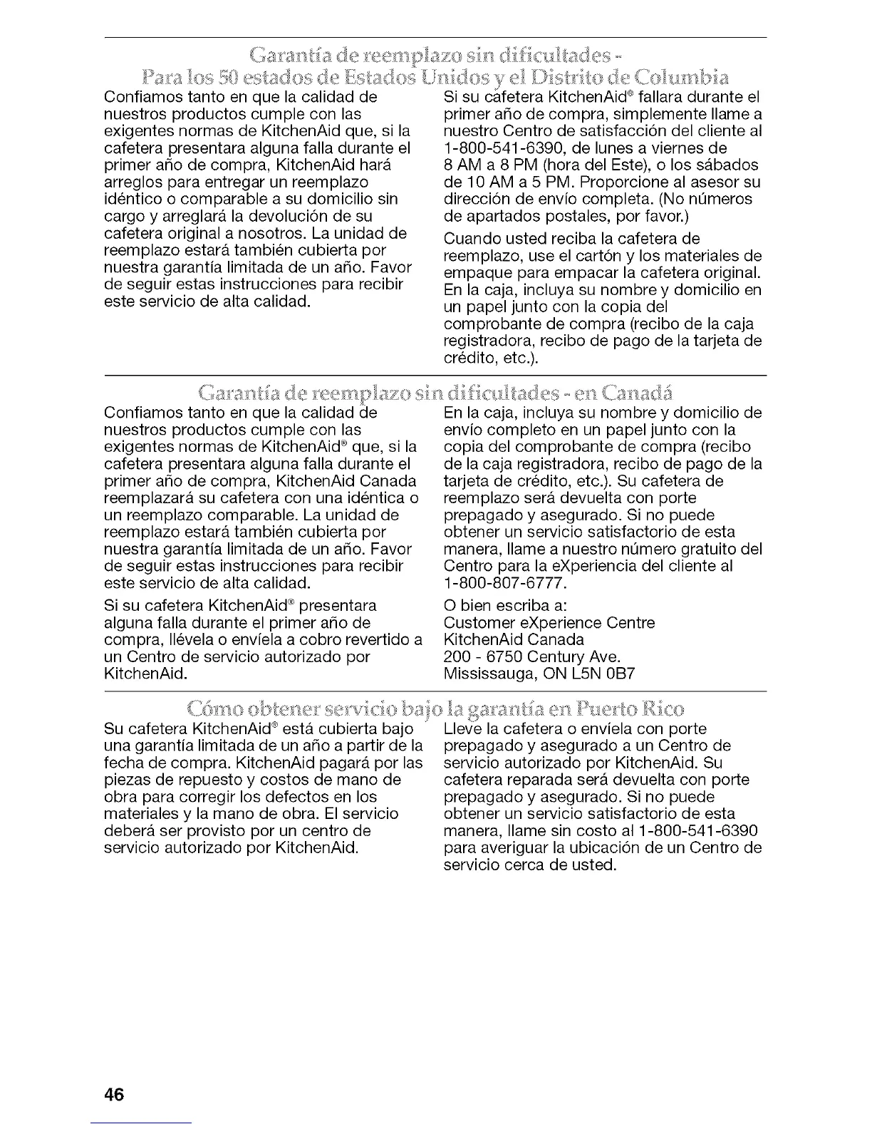 Su cafetera KitchenAid ®esta cubierta bajo Lleve la cafetera o envJela con porte
