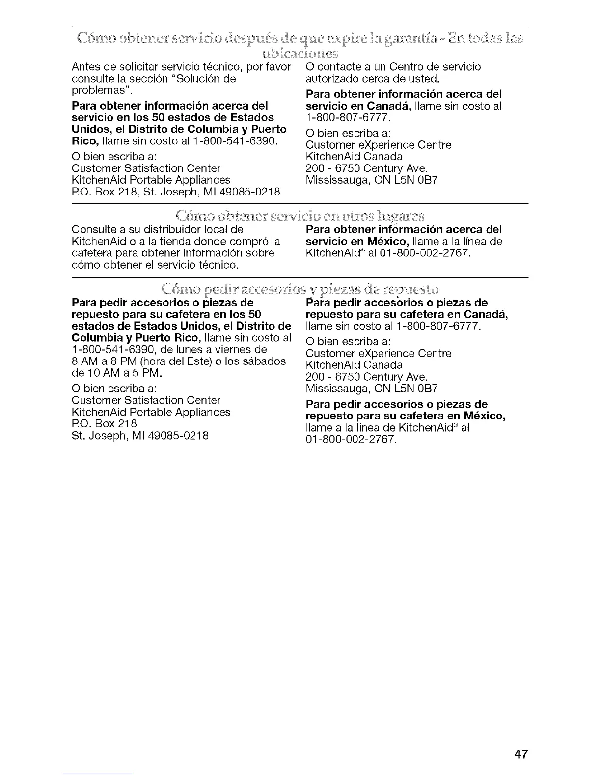 cafetera para obtener informacion sobre KitchenAid ®al 01-800-002-2767.